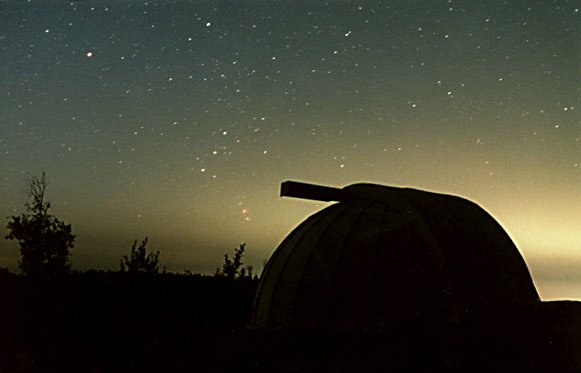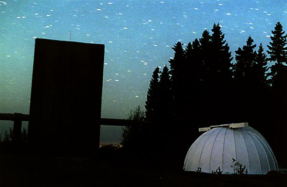 Yöllisiä kuvia Nyrölästä tähtitornin rakennusvaiheen ajalta.