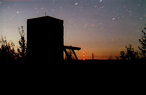 10.8.1997. Etualalla pariviikkoa sitten valettu kaukoputken peruspilari aamunkoitteessa. Taustalla TV- masto. Kuva: Marko Moilanen