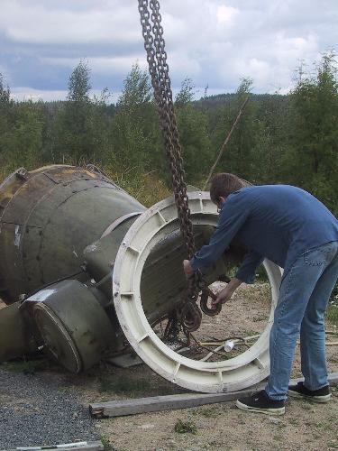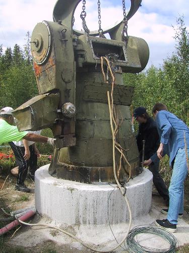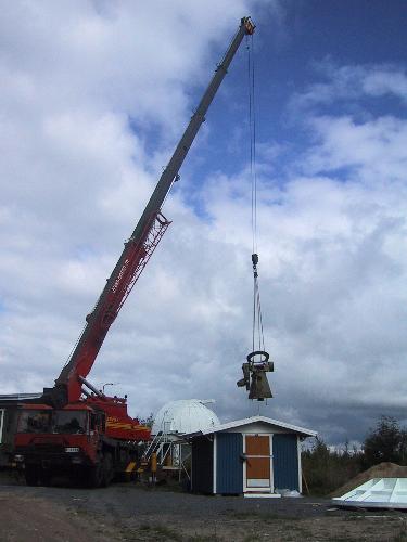 Jyväs-Noston suuri Lokomo nosti puolitoistatonnisen jalustan kevyesti taivaalle ja tähtitornin takana olevalle alustalle.