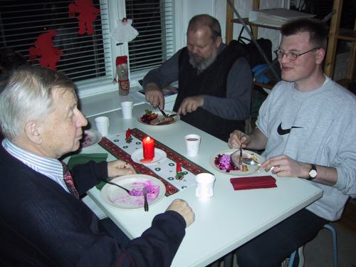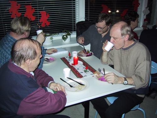 Tälle sivulle on koottu pikkujoulujen kuvasatoa. Tapahtuma järjestettiin Sepänkeskuksen tiloissa 14.12.2000 kello 18-22. Paikalla oli noin 20 jäsentä.
