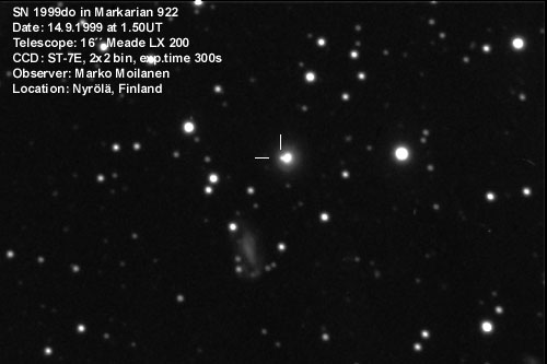 CCD ST-7E, temp -15c, 2x2bin, unfiltered 3x300s exposure. Telescope 16 inch Meade LX200.