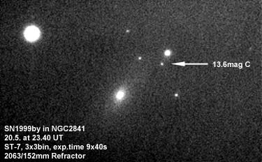 CCD ST-7, 360s. Track and Accumulate exposure (9x40s) on low-resolution mode, 3x3bin, unfiltered, CCD-temp -16c, telescope 152/2063mm Refractor.