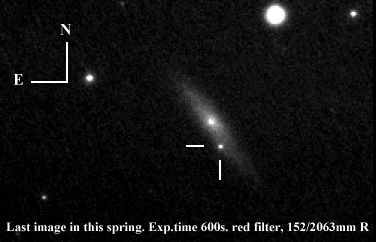 CCD ST-7, 180s. Track and Accumulate exposure (15x40s), red filter, temp -20c, telescope 152/2063mm Refractor.