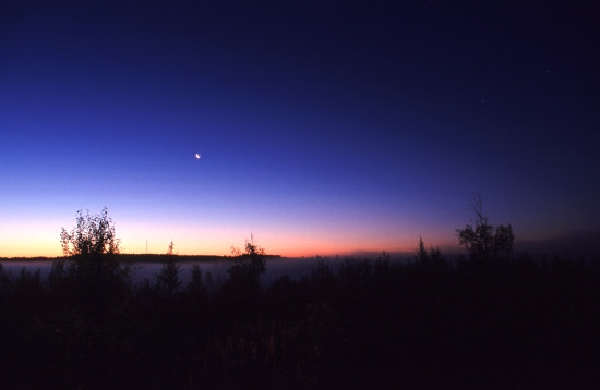 Syys-aamuisin Nyrölän Observatorio alueen ympäristö on vaikuttavan näköinen. Lähellä oleva järvi nostattaa paksua usvaa, joka kuitenkin yleensä jää mäen alapuolelle eikä nouse tähtitornille asti.