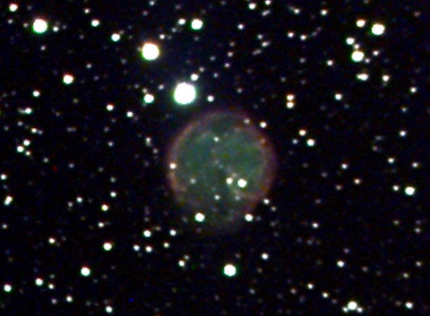 vain hieman suurempi kuin Jupiterin. Kuvassa näkyy myös sumun sinertävä keskustähti. Sen kirkkaus on noin 18 magnitudia. Kuvan resoluutio ja tähtien koko raakakuvissa oli alle 2 kaarisekuntia.
