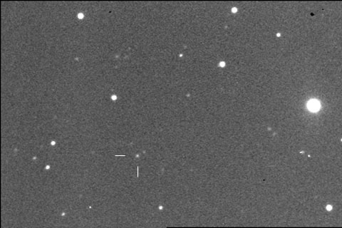 Kuva: Marko Moilanen ja Jouni Sorvari, Nyrölä Röntgennova RXTE 1118+480 oli viime kevään tutkituimpia kohteita. Se edusti aivan uutta kohdetyyppiä ja sen havaitsemisesta järjestettiin keväällä 2000 laaja kampanja, jossa oli mukana mm. Hubble avaruusteleskooppi ja ASCA röntgensatelliitti. Tähti löydettiin XTE röntgensatelliitin avulla maaliskuun 30. päivä. Nyt kuluneen syksyn aikana tähti on himmentynyt voimakkaasti, ja yllä olevassa kuvassa sen kirkkaus on enää 18.09 magnitudia. Mittauksen suoritti tohtori Makoto Uemura Kioton yliopistosta. Hän myös koordinoi kohteen näkyvän valon aallonpituudella tapahtuvaa havaintojen käsittelyä. Nyrölässä tähteä seurataan kuluvan talven aikana mahdollisuuksien mukaan. Lisää tietoa Nyrölässä tehdyistä havainnoista löydät täältä. Kuva otettiin Nyrölän tähtitornilla 30.9.2000 Siriuksen 16-tuumaisella Meade-teleskoopilla ja digitaalisella ST-7E CCD-kameralla. Kuvan terävyyden varmisti AO-7 aktiivioptiikka-järjestelmä