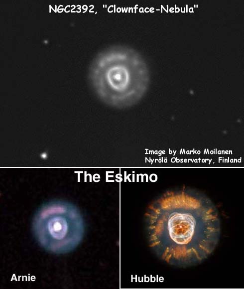 NGC2392 on pieni planetaarinen sumu Kaksosten tähtikuviossa. Se tunnetaan myös monella lempinimellä, "Eskimo-sumu" on yksi tunnetuimmista sen hieman ihmisen kasvoja muistuttavan ulkonäön vuoksi.
