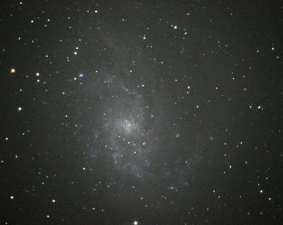M33 Kaukoputki: Celestron C8-SCT (polttovälin lyhentäjällä) Kamera: Canon EOS450D (valotusaika 11 min 40 sek) |