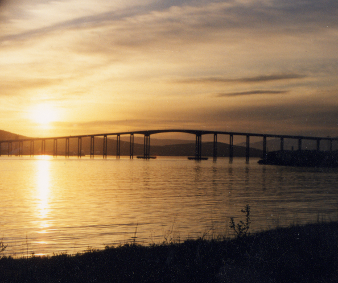 Silta, joka vie Tromsøøn sekä Ulsvuono takana Houvuori