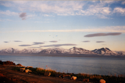Ekkerøy Norjassa. Taivas vaikuttaa meren väreihin.