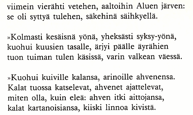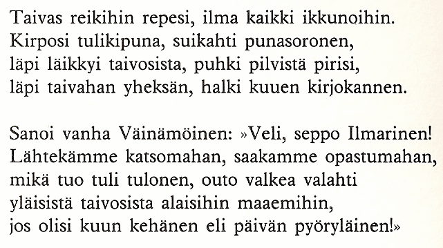 Kansaneppoksemme Kalevala5) on kuitenkin pahasti ristiriidassa tämän arvion kanssa. Erityisesti Kalevalan runo