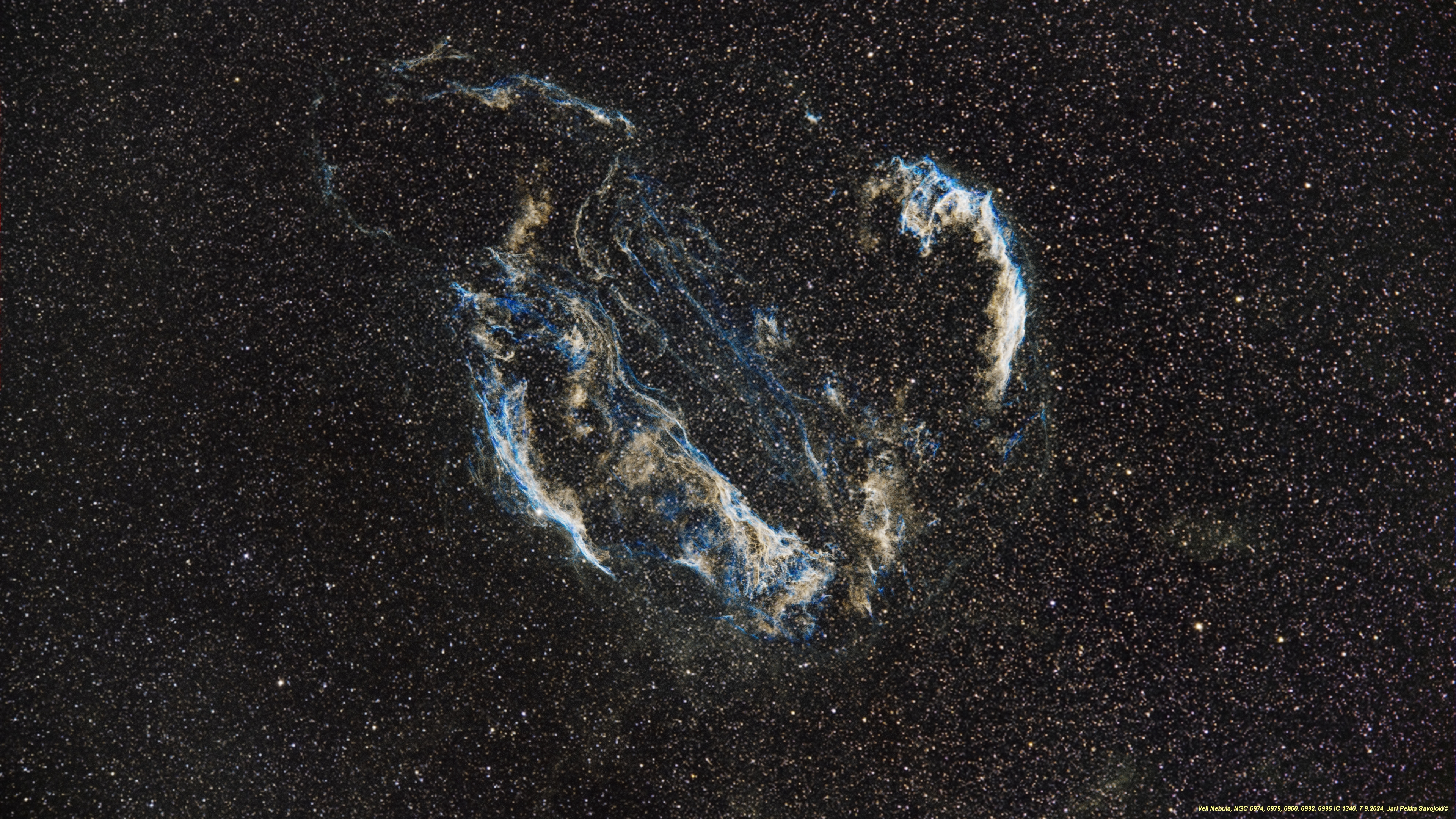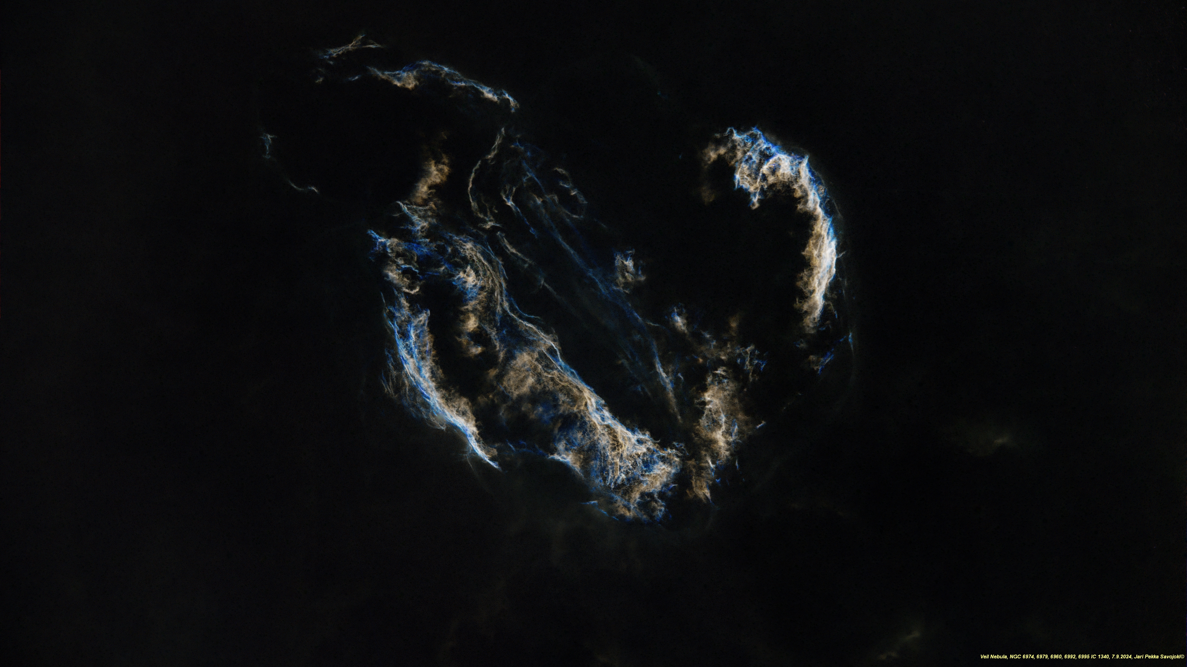 Artjärven Syvätaivas tapahtumassa 7.9.2024 kuvattu: Harsosumu. Kuvan käsittely PixInsight ohjelmalla. Laitteisto: EQ6 Pro, Tokina F 2.8 300mm, ASI6200MM, Baader F 3 narrowband Ha,OIII, SII filters , Guide camera on guide 400mm telescope. |