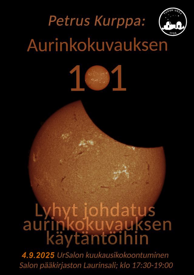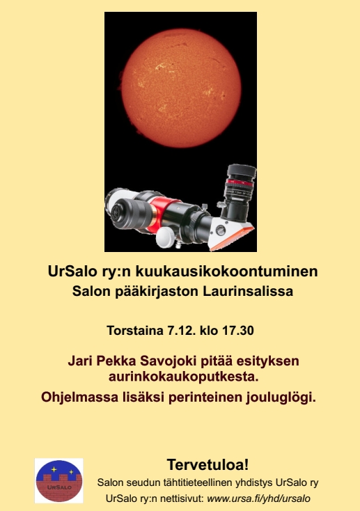 Osa UrSalon kuukausikokoontumisen esitelmistä, sekä UrSalon etätähtinäytännön tallenteet että UrSalon tähtikuvien esittely ovat katsottavissa YouTubesta UrSalo studiosta. Tässä linkki UrSalo studioon.