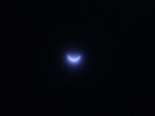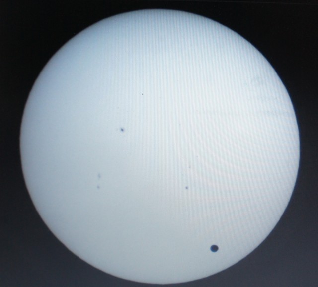 Ohessa livelähetyksestä otettu kuva Venuksen ylikulusta ( viivat johtuvat läppärin näytön heijastuksista ):