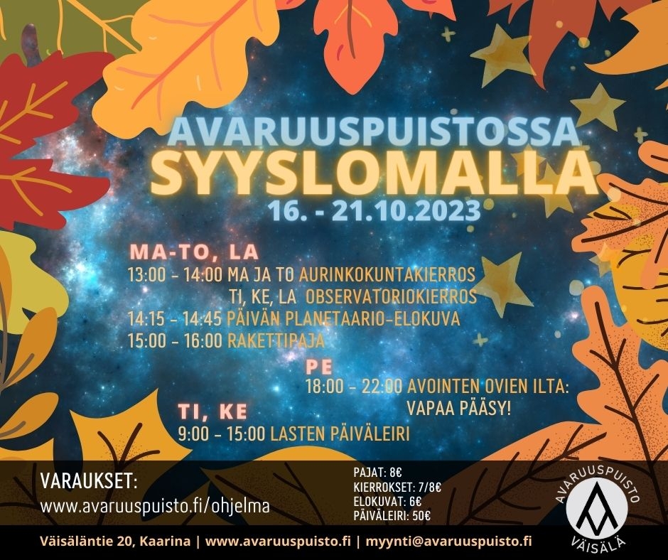 Avaruuspuisto Väisälän Avoimet ovet 18.10. 100-vuotta tähtitiedettä Turussa!