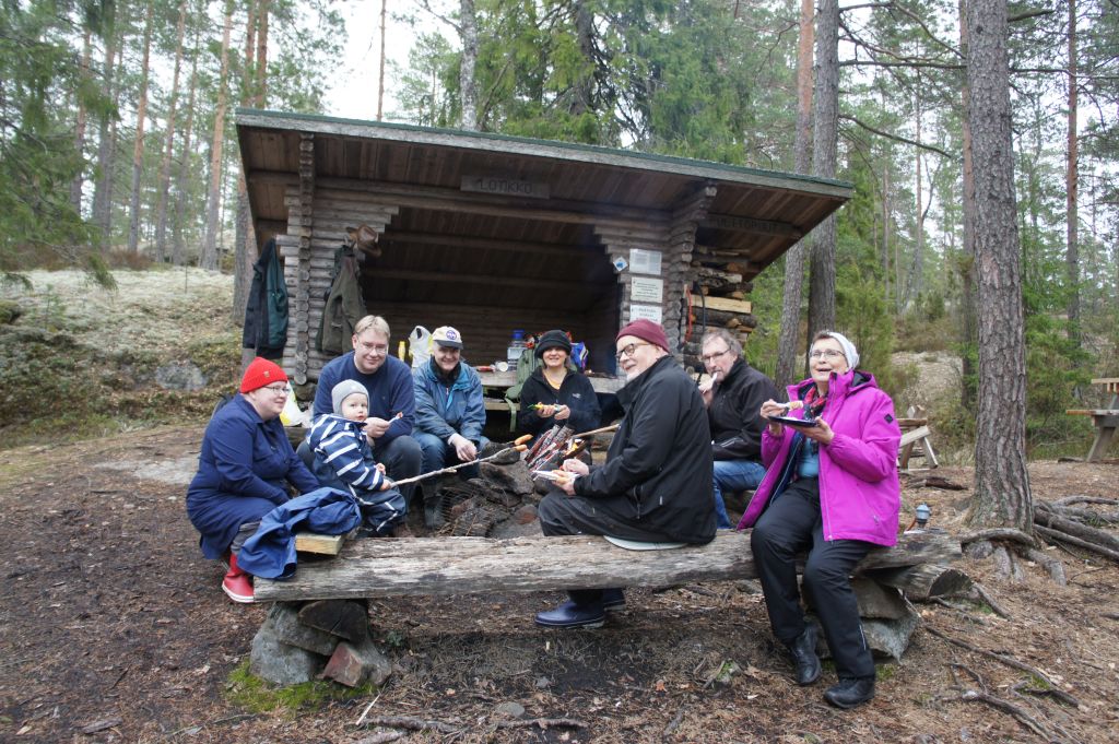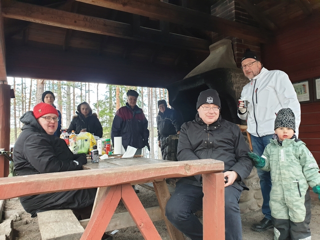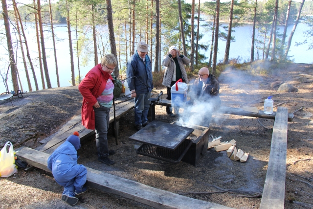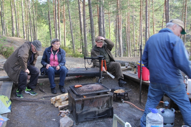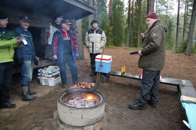 Mukavaa oli. Käristimme makkaraa, Esko paistoi meille lettuja ja saatiin vielä pannukaffetta. Nähtiin tornilta mm. teerien soidinmenoja ja oli siellä joukossa metsokin. Erityiskiitos Eskolle ja Pekalle retken järjestelyistä!