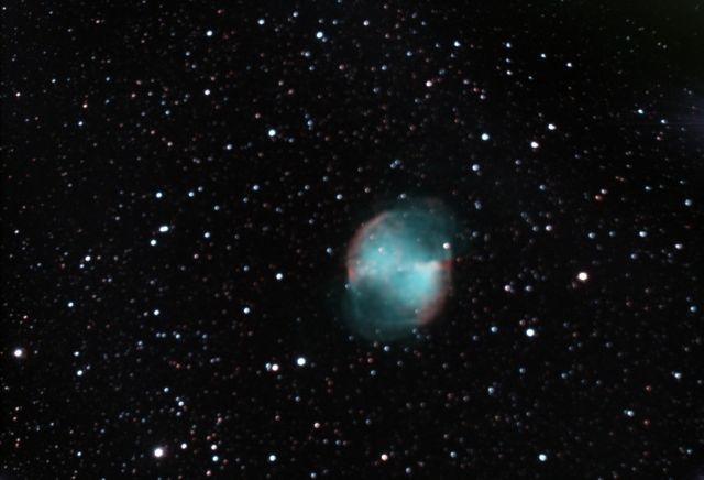 | Tässä Ursalon kuvausryhmän ottama kuva tältä syksyltä ( 21.11.2009 ), Nostopainosumusta M27, joka on planetaarinensumu Ketun tähdistössä.Vaikka olosuhteet eivät olleet kovin hyvät saatiin kohtuullinen kuva kohteesta. Kuva on otettu tähtitornin Meade LX200GPS putkella ja SBIG 7XE tähtikameralla, käyttäen ensimmäistä kertaa kameran seurantakennoa. UrSalon kuvausryhmään kuuluvat tällähetkellä Pekka Mikkola, Jari Pekka Savojoki ja Tapani Huttunen. | ![]() |