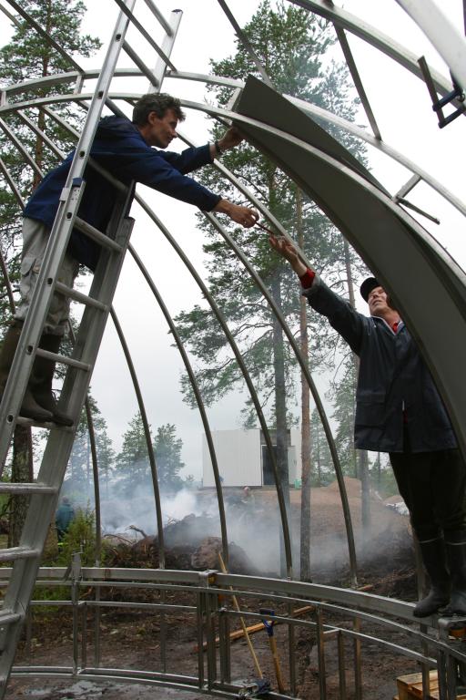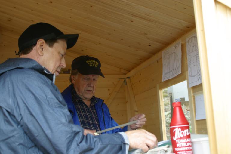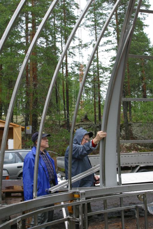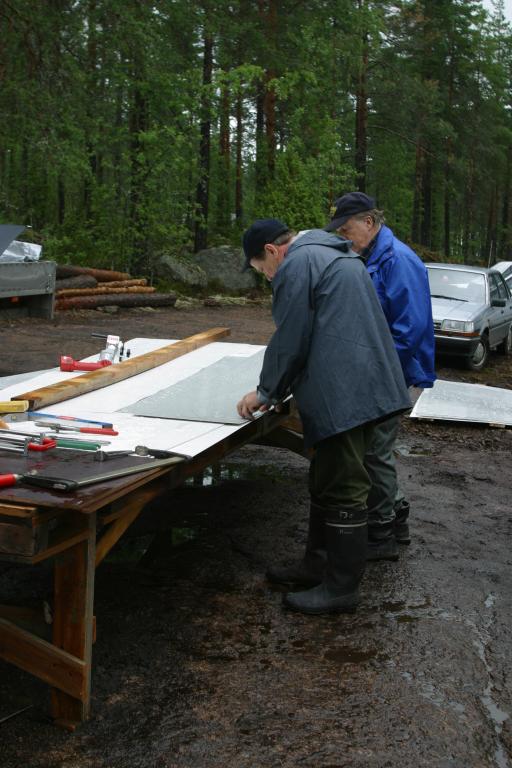 Oksienpolttoa Tähtikalliolla Kuvun pellitys alkoi Ensin tutkittiin piirustuksia Sitten mittailtiin Ja leikattiin Eka segmentti Toinen jo