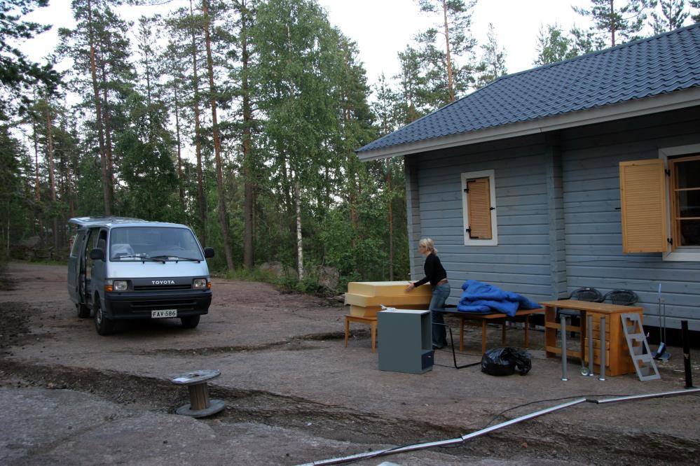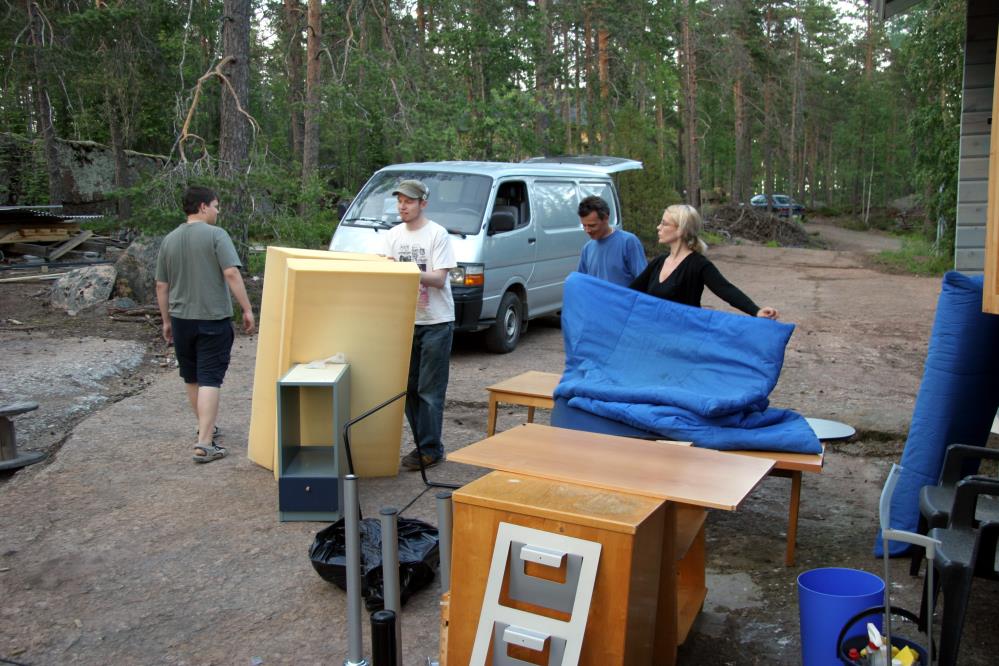 Paku oli täynnä vaix mitä: oli pöytiä, tuoleja, sohvia, hyllyjä, kodinhoitosettiä, lehtitelinettä, tietokonetta, ...