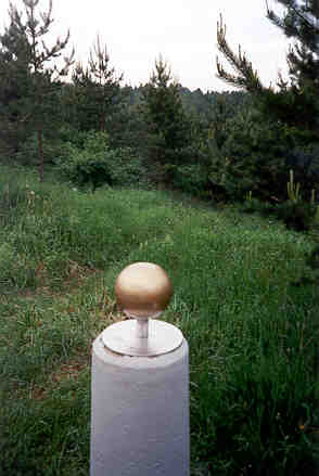 Aurinkopallo Leo Sulamaan observatorion raunioiden takana.