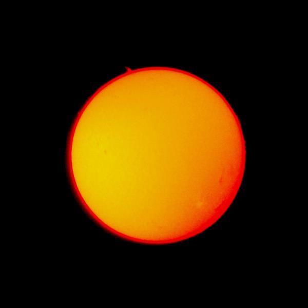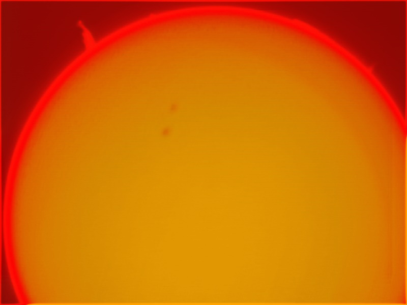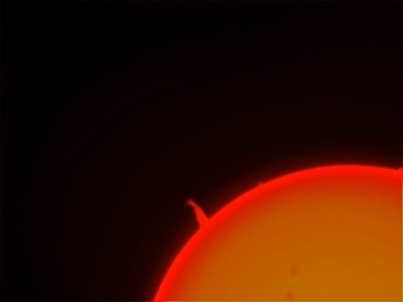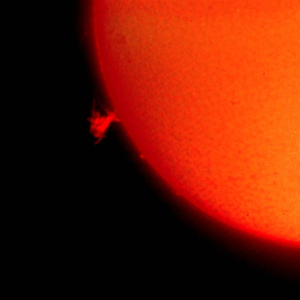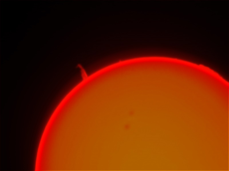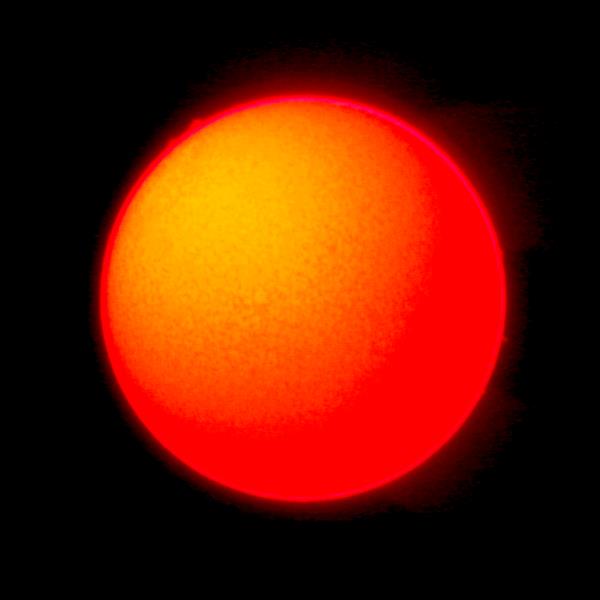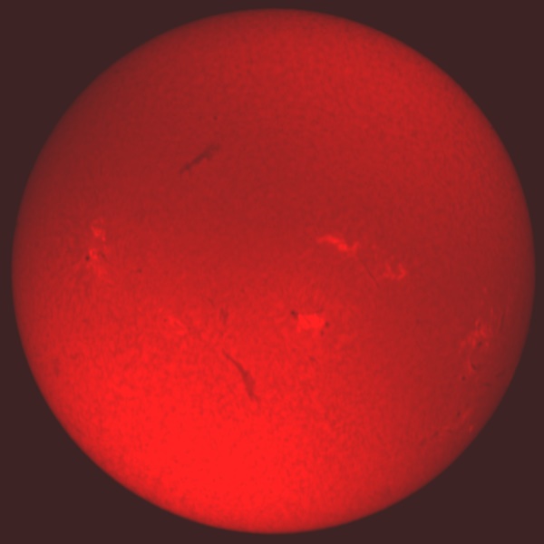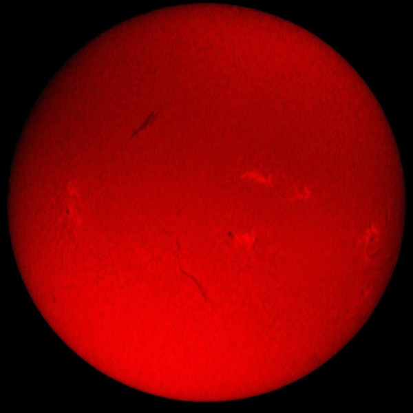 91 % of atoms in our Sun are hydrogen. The hydrogen alpha is the first atomic transition in the Balmer series; wavelength = 656.3 nm. This absorption line of neutral hydrogen falls in the red part of the visible spectrum and is convenient for solar observations. The H-alpha line is used for observations of solar flares, filaments, prominences and the fine structures of other active regions.