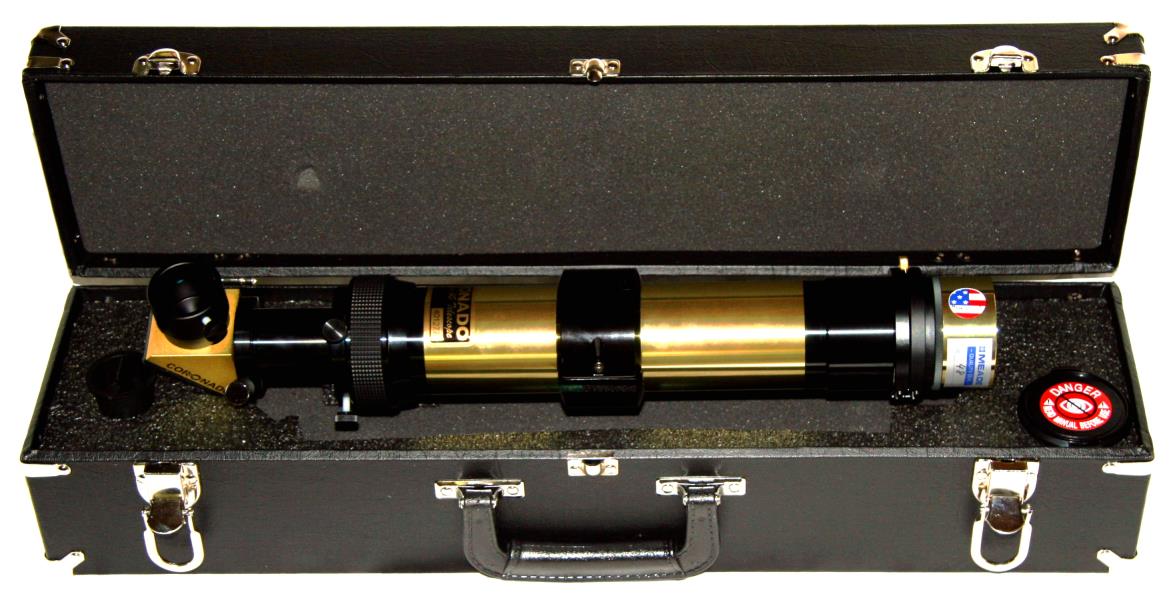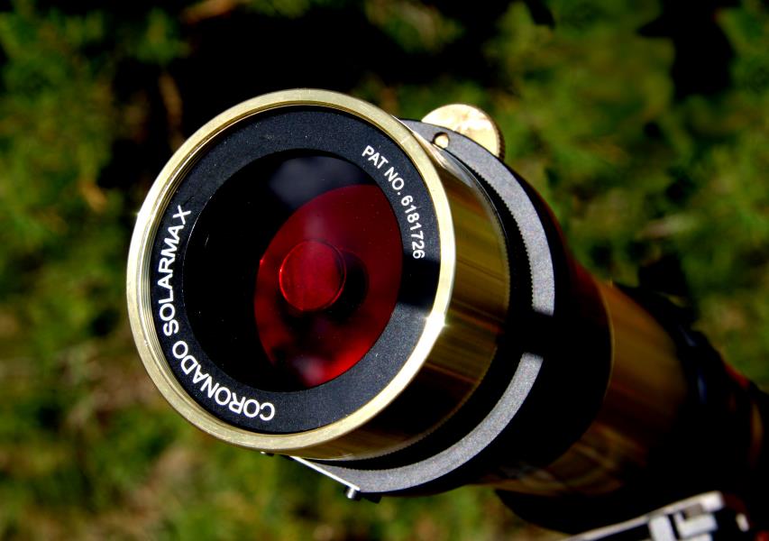 Coronado (Meade) MaxScope40 brass telescope for Sun light in hydrogen alpha with SolarMax40 BF10 ( 0,7Å front filter element ) and T-max ( wave length adjustment ).