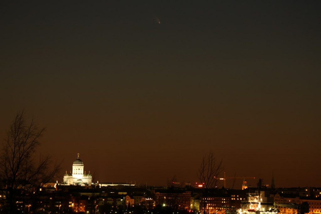 | 60°09'53" N, 25°00'52" E, looking over city lights