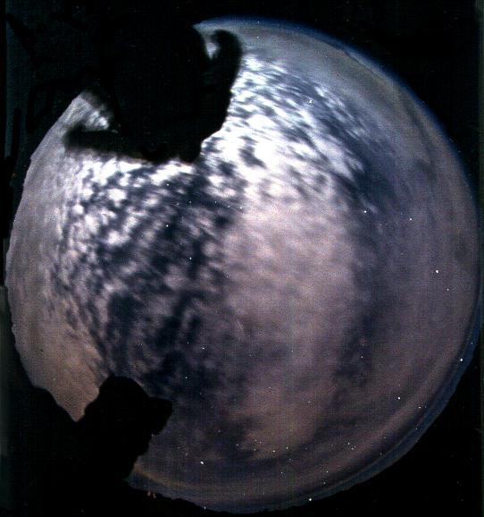 Vähäistä keskipilveä. Kuu täälläkin. Liekä sama Kuu kuin silläkin :)