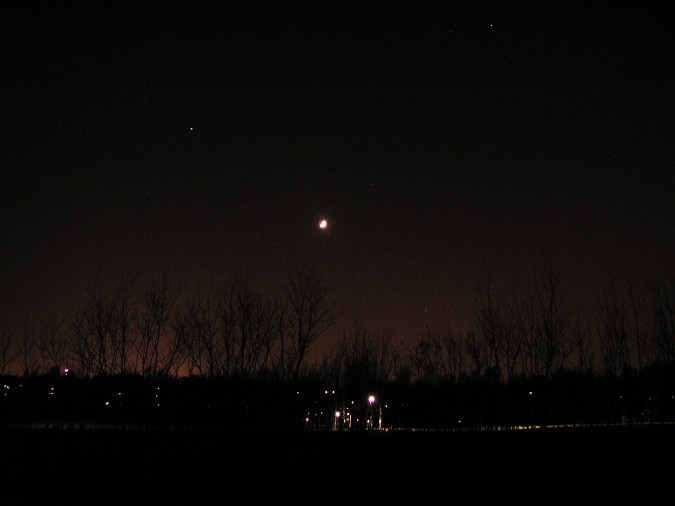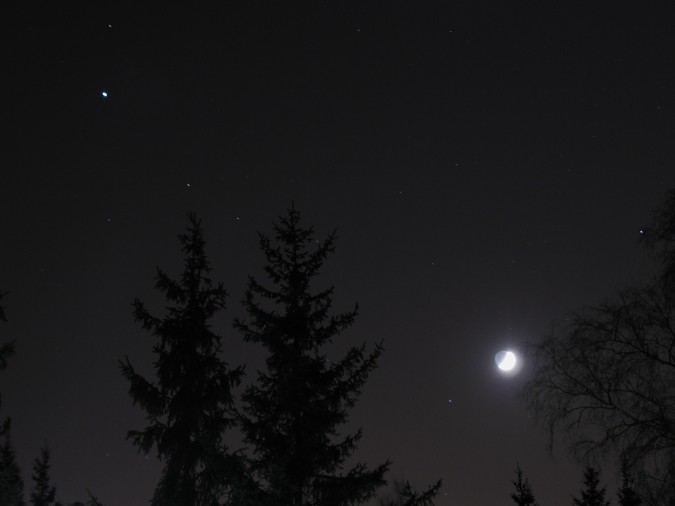 ![]() Jupiter in NE 19:55UT 16 seconds exposure | ![]() Jupiter, Moon and Saturn fight light pollution 20:30UT 1 second | ![]() Moon and harbour lights 20:40UT 1 second |