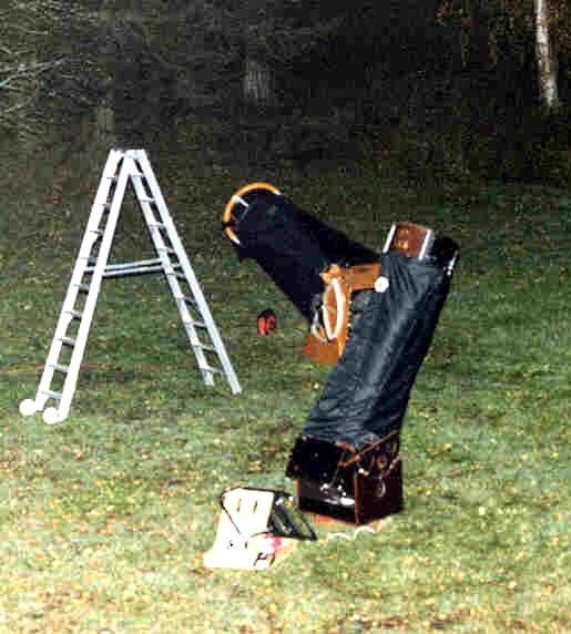 Kvandrantin linja-auton kokoinen (ja tässä näköinenkin) Obsession, Markus Tuukkasen uusin 46 senttinen ja maan mainio laser-kollimaattori sekä Jorma Kosken samankokoinen, Markuksen aiempaa tuotantoa oleva dobsoni. Lisäksi oli muhevaa kiikaria ja muuta sälää.