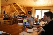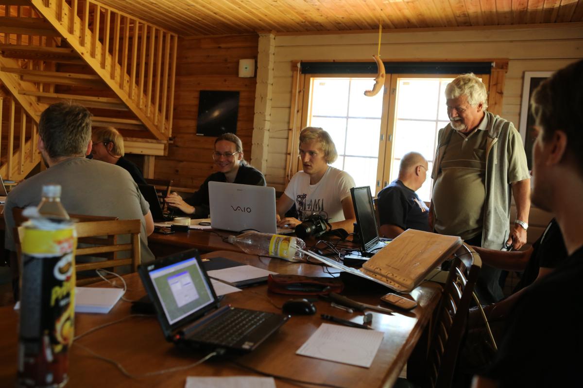![]() Linssit huurussa | ![]() Astrofox suojassa | ![]() Putket peitossa | ![]() Portaikkokokous | ![]() Sisäaktiviteetteja | ![]() Esitelmäyleisöä |