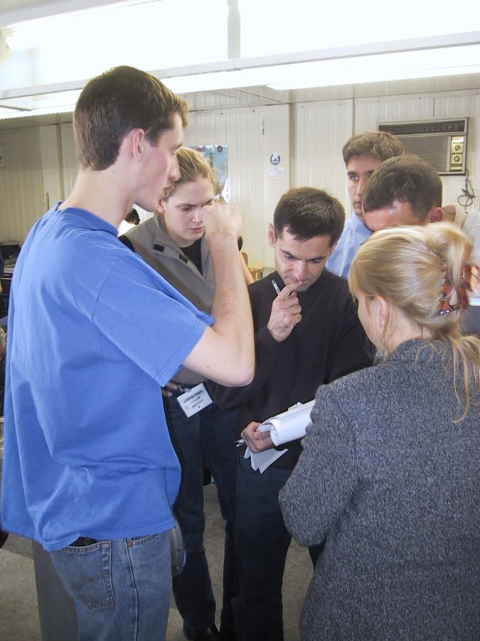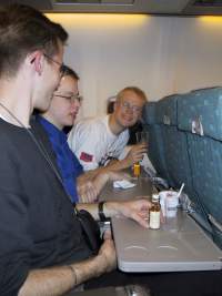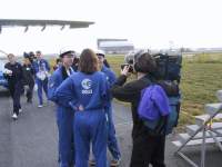 19:30 Bussissa Turvatarkastus oli melkoista kidutusta. Koneeseen otettiin yksi henkilö joka ryhmästä ja vastuun sai kantaa Kimmo, taas. Jokainen koe käytiin erittäin huolellisesti läpi, aikaa meni 20-30 minuuttia. Tarkastusryhmässä oli toistakymmentä henkilöä: pilotti, Esan henkilökunta, CEV crew(turvallisuudesta vastaavat) sekä flight crew. Kylmä hiki alkoi nousta otsalle kun melkein joka toinen koe sai passituksen ulos koneesta. Oma kokeemme meni yllättävänkin helposti läpi, vain lentoaikataulu piti kirjoittaa tarkemmin siten, että siitä näkee sekunnilleen mitä aiomme tehdä missäkin vaiheessa. Jonkun ajan päästä alkoi myös hylättyjä kokeita tulla takaisin ja tämänhetkisen tiedon mukaan kaikki on hyväksytty lennolle.