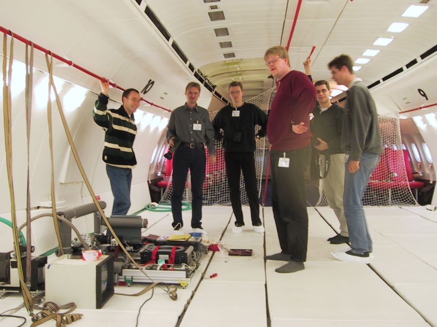 Mahtavaa!!!! Painottomuus on olotila jota on sanoin hyvin vaikea kuvailla. Ensimmäinen paraboli ja painottomuus ovat asioita jotka jäävät varmasti mieleen. Lento meni melko hyvin lukuun ottamatta Juhan pahoinvointia 23:n hypyn jälkeen. Muutama valmis näyte meinasi päästä karkaamaan auki jääneestä pullosta, mutta näytteet saatiin kuitenkin talteen Thierryn näppärien sormien ansiosta.