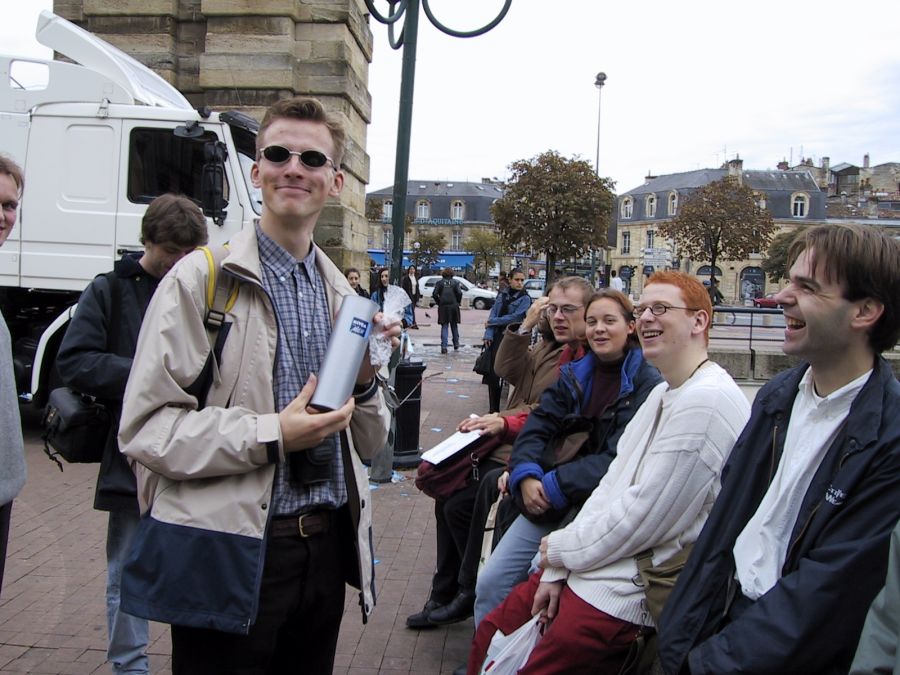 Pian olimmekin jo Bordeauxin keskustassa ja täysin eksyksissä siihen asti kunnes insinööri kaivoi kartan takkinsa taskusta. Suunnistimme rantaan jossa tapasimme ensimmäisen monesta monesta hotelliimme majoittuneesta ryhmästä. Kyllä Bordeaux on pieni paikka.… vastaamme tuli oululaisten, ranskalaisten ja saksalaisten ryhmät eikä siinä vielä kaikki sillä vain hetken kuluttua törmäsimme Tähdet ja Avaruus-lehden toimittajaan ja MTV3 toimittajaan.