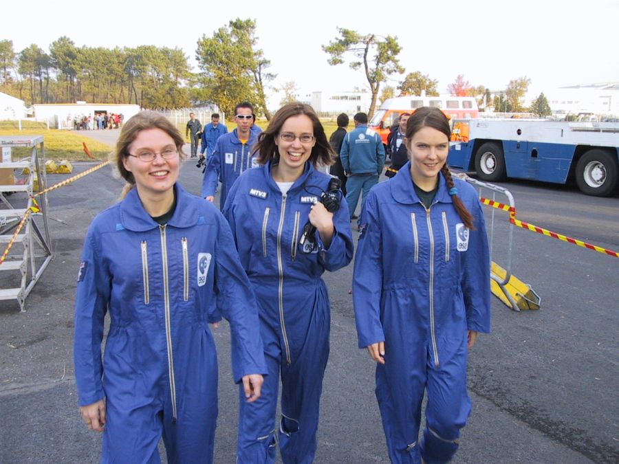 Turvatarkastuksen jälkeen olikin hieman vapaata aikaa, joten tutustuimme toiselle lennolle saapuneisiin ryhmiin ja heidän kokeisiinsa. Klo 16:00 oli safety briefing ruokalassa. Puheenvuoron sai mm. Ockels, Thierry, Frances, pilotti, lääkäri ja safety crewn jäsen. Tilaisuus oli asiallinen ja erittäin informatiivinen:"If you are feeling sick, use the paper bags, they are free! You can get them as many as you want. But remember to close them before giving them to the flight crew. If you want to get them back after the flight, we can write you name on them…" Tilaisuus sisälsi myös ei-toivottua infoa ryhmällemme. Kun on puoli vuotta odottanut mikrogravitaatiolennolle pääsyä, ja kolme päivää ennen lentoa tullaan sanomaan, ettet sinne pääsekään, niin mieliala ei ole välttämättä kovin korkealla. Ranskalainen systeemi ja lainsäädäntö henkilöityivät tällä kertaa lentolääkäriin, joka näin viime hetkellä vesitti Erkin lentoaikeet. :-(