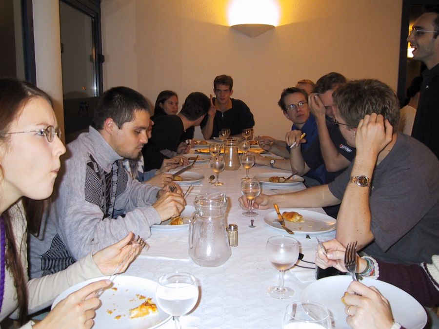 Jotta suomalaiset muistettaisiin muustakin kuin teekkarilakeista ja erilaisista elektroniikkavempeleistä, jaoimme kaikille illallisella paikalla oleville ryhmille salmiakkia, jota oli hamstrattu kotimaasta kassikaupalla. Samalla jaoimme pienen esittelylappusen ryhmästämme, koulustamme ja Suomesta sillä seurauksella, että nyt melkein kaikki ovat tulossa meille lomillaan... Täytyy sanoa että suosionosoitukset puhujille olivat sitä luokkaa, että ranskalaishotellin välikatto oli romahtaa...