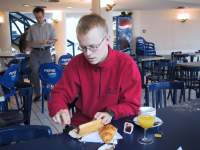 Tänään olikin sitten kaikilla aikainen herätys. Turvallisuustarkastuksen takia Kimmo joutui lähtemään Novespacelle muuta porukkaa aikaisemmin joten aamu oli aika kiireinen. Syömässä käytiin vuorotellen toisten pakatessa turvatarkastusta varten tarvittavia tavaroita.