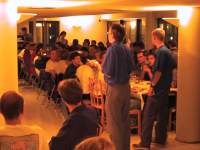 Illan aikana yritimme tutustua kaikkiin jo paikalle saapuneisiin ryhmiin. Ensikontakti Englantilaiseen ryhmään saatiin hotellin aulassa, jossa he olivat istuneet koko iltapäivän. Varsin hiljaisen tuntuista väkeä, rauhallisia, mutta illan mittaan saimme myös heihin hiukan eloa. Myös Italialaiset, ranskalaiset ja toinen ryhmä Englannista ovat saapuneet. Cambridgen opiskelijat olivat leppoista ja avointa väkeä. Nukkumaan pääsimme hieman ennen puolta yötä.