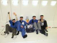 Päivä Novespacella on miltei ohi… uusia ryhmiä on tullut jovaikka millä mitalla. Kaikkiin on yritetty tutustua mutta ei sen tarkemmin (aikaa on). Meidän koelaitteistomme on nyt kiinnitetty kokonaan koneeseen ja on täten täysin valmis perjantaista lopputarkastusta varten.