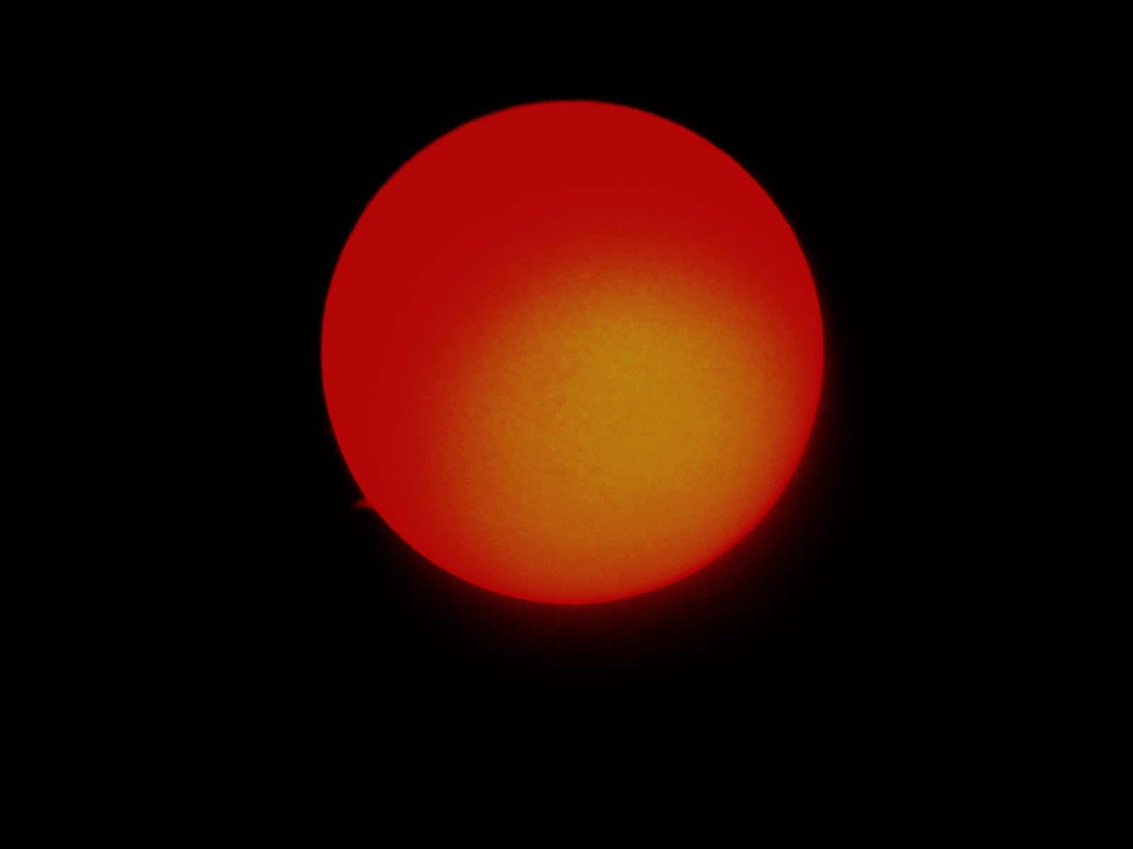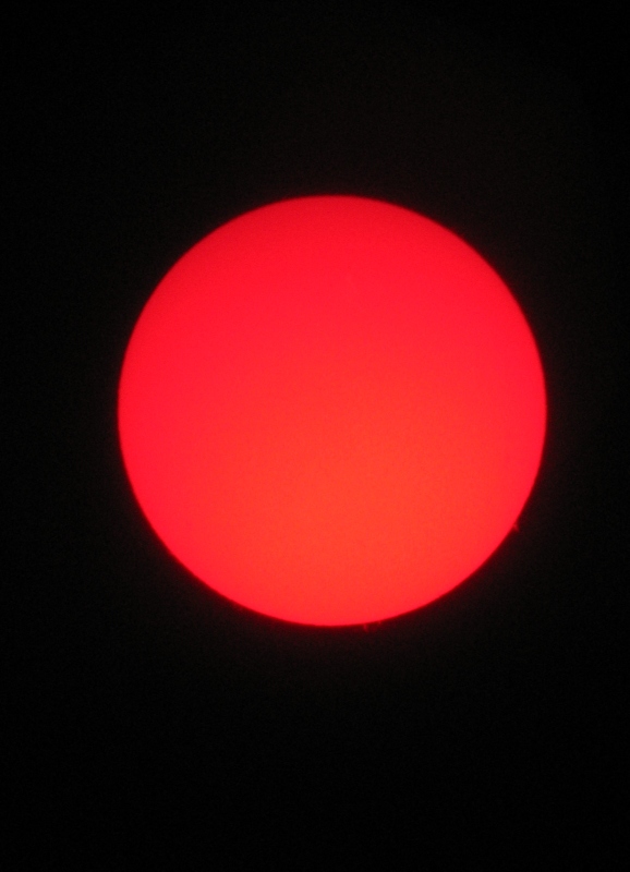 5.8.2006 klo 15.07 Töysän Hakojärvellä, Cygnus 2006-leirin aikana pienellä Meaden linssiputkella kuvattu täysin pilkuton Aurinko.